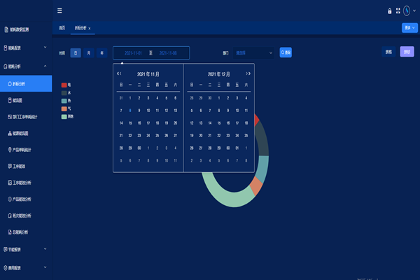 按日、月、年统计企业各产品的能源消耗,并与产量数据结合,计算产品的单耗;按日、月、年统计企业重点用能设备的能源消耗,并根据折标系数折算成吨标准煤能耗。